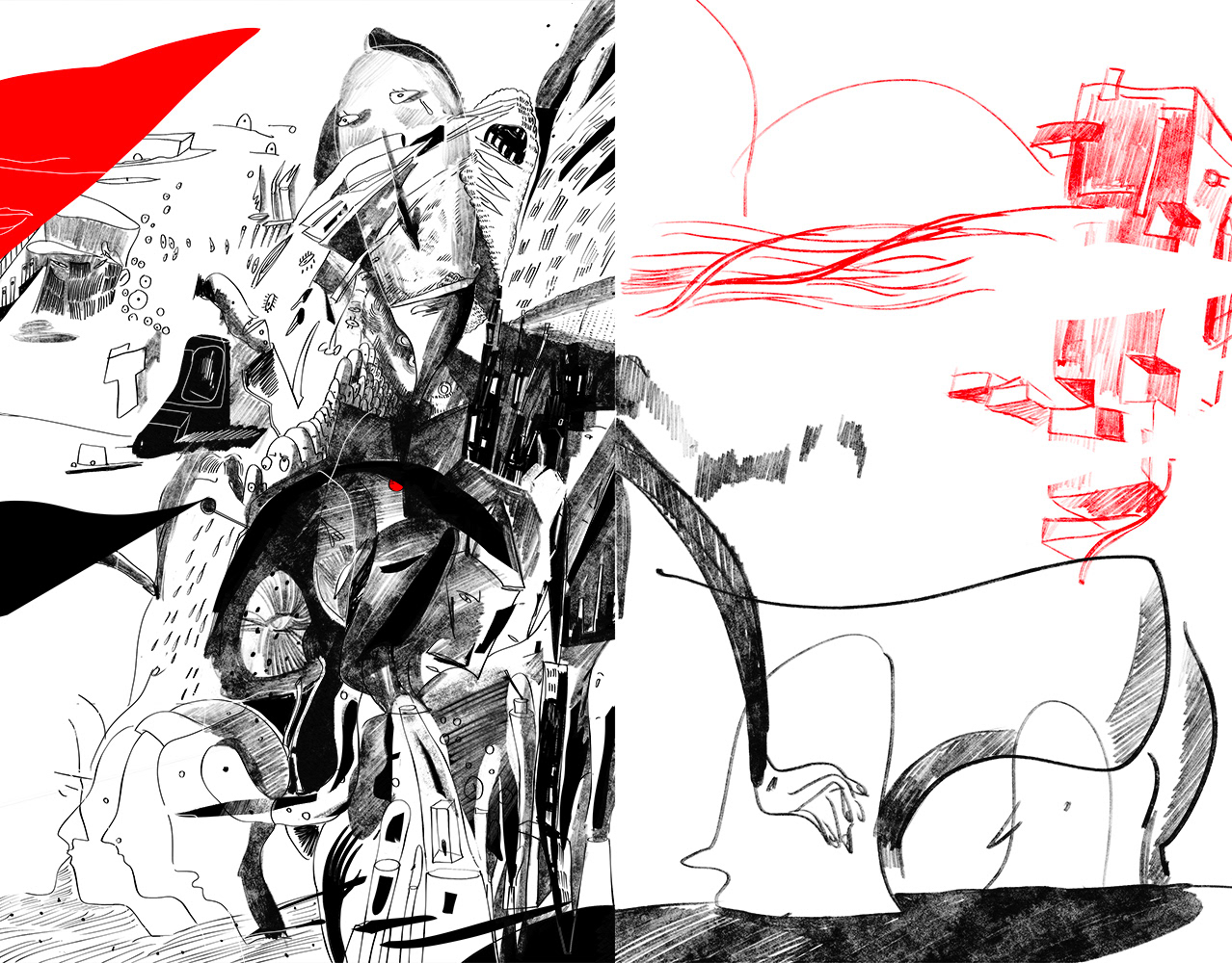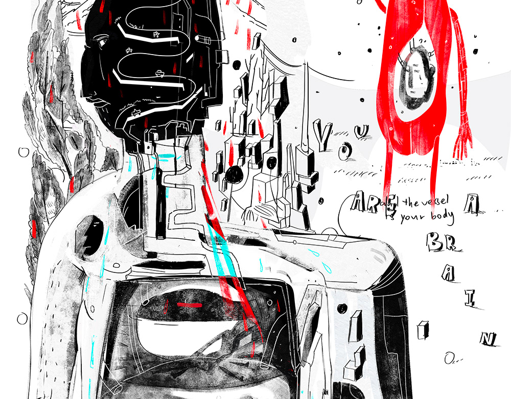 Fake sci-fi cover, spot illustrations
